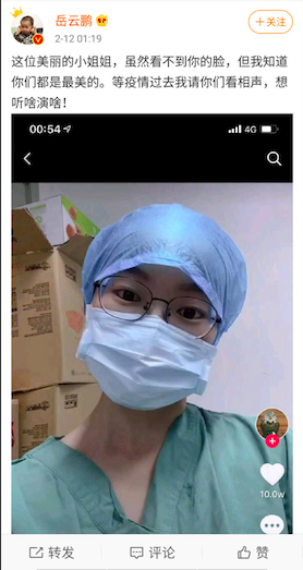 這兩天,相聲演員岳云鵬發(fā)的微博火了。原來(lái)是前線的一位護(hù)士在社交媒體平臺(tái)發(fā)文稱,等疫情結(jié)束想去德云社看演出。岳云鵬看到后在微博暖心回復(fù)稱:這位美麗的小姐姐,雖然看不到你的臉,但我知道你們都是最美的。等疫情過(guò)去我請(qǐng)你們看相聲,想聽啥演啥!
