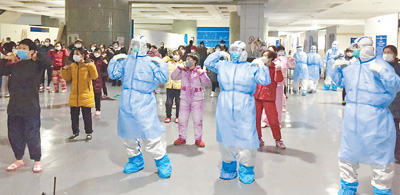2月12日,武漢國際會(huì)展中心方艙醫(yī)院,醫(yī)護(hù)人員和患者一起跳舞。程少文攝(影像中國)
