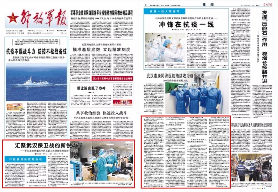 ▲刊于《解放軍報》2020年2月17日頭版、03版
