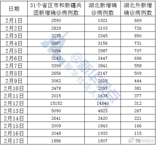 2月17日,31個省(自治區(qū)、直轄市)和新疆生產建設兵團報告新增新冠肺炎確診病例1886例,湖北新增確診病例1807例。這就是說,除湖北外的30個省區(qū)市和新疆生產建設兵團昨日新增確診79例,這是自2月3日來新增病例到達高點890例以來的首次兩位數報告,也是第14連降。?