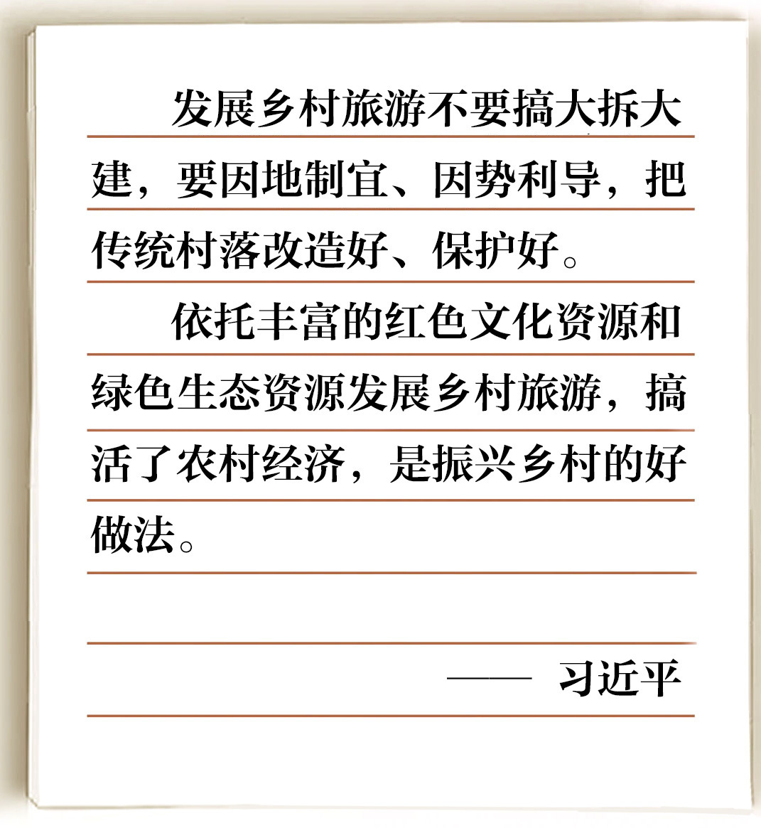 依托豐富的紅色文化資源和綠色生態(tài)資源發(fā)展鄉(xiāng)村旅游,搞活了農(nóng)村經(jīng)濟(jì),是振興鄉(xiāng)村的好做法。