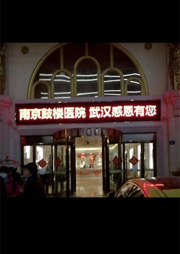 4 輛大巴載著我們駛向酒店,原本繁華的街道冷冷清清,原本擁擠的道路暢通無阻。酒店門口的電子展示屏上滾動著:南京鼓樓醫(yī)院,武漢感恩有您!頓時心里感到暖暖的。