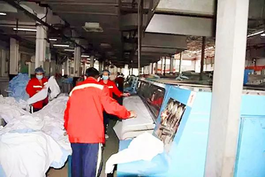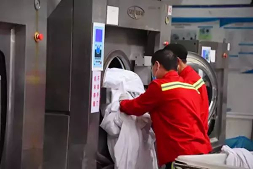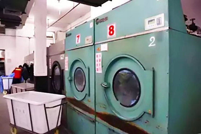 一套臥具要經(jīng)過11道洗滌消毒工序,過程中設(shè)備會自動加熱,溫度逐步加熱至80攝氏度,在這樣的恒定高溫下要足足轉(zhuǎn)洗約50分鐘。