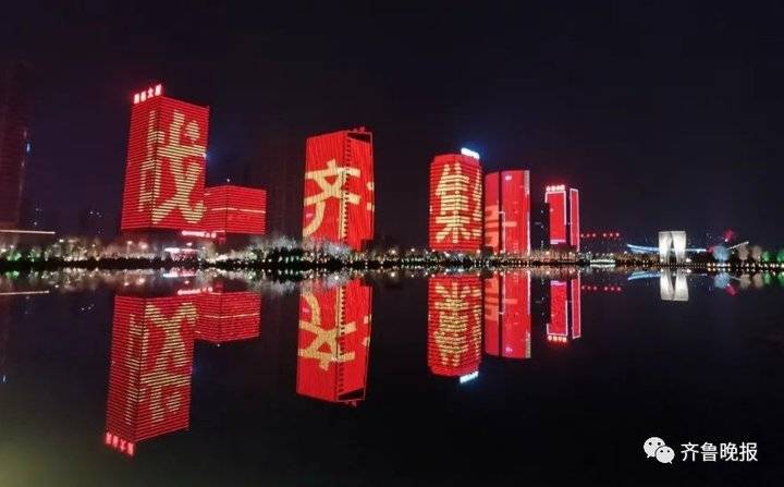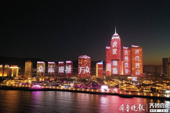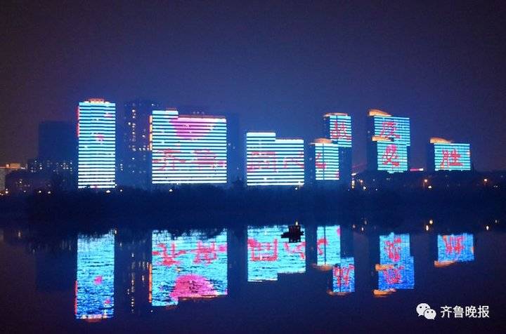 2月22日19時整至20時整,山東十六市的各大地標(biāo)建筑在同一時間一起璀璨點亮。