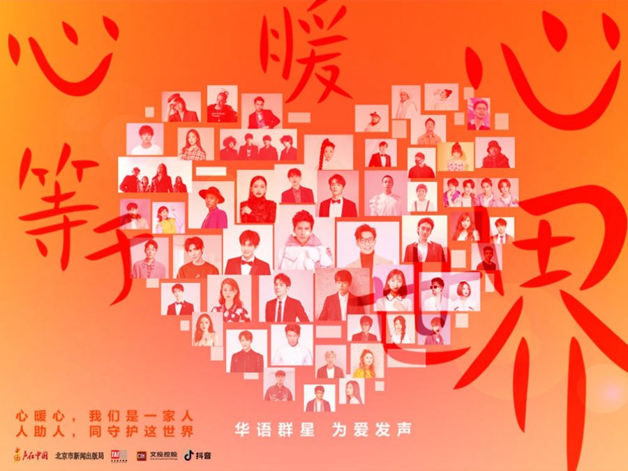 《心暖心等于世界》由新華社“聲在中國(guó)”、太合音樂(lè)集團(tuán)等多家單位共同出品,集結(jié)大張偉、品冠、劉惜君、阿云嘎等70位志愿者共同完成,用溫暖的歌聲向一線醫(yī)護(hù)工作者致敬,為努力抗擊疫情的每個(gè)人加油。心暖心溫暖人間,人助人守護(hù)世界。