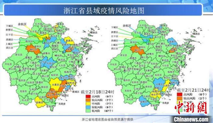 在2月10日舉行的浙江省新冠肺炎疫情防控工作新聞發(fā)布會(huì)上,該省衛(wèi)生健康委副主任孫黎明首次將一張布有五種色彩的浙江地圖公示于眾。