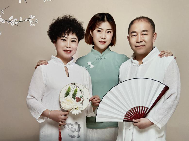 師華仙(左二)一家4年前拍攝的全家福翻拍照。王春艷攝