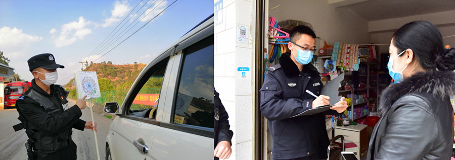 左圖為正在轄區(qū)疫情防控卡點(diǎn)值守的大兒子王麒灃;右圖為摸排轄區(qū)人員活動軌跡的小兒子王杰暉。王春艷攝