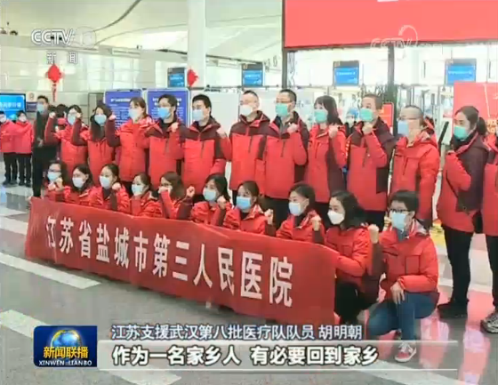 江蘇支援武漢第八批醫(yī)療隊隊員 胡明朝:在疫情的關(guān)鍵時期,全國人民支持。作為一名家鄉(xiāng)人,有必要回到家鄉(xiāng),做出我自己的貢獻。