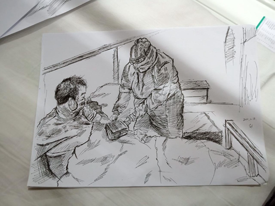 彭昕燁在方艙醫(yī)院所作的速寫(xiě) 圖片由受訪者提供