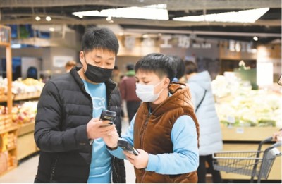 收到短信,家住北京朝陽的柯女士下了樓,不一會(huì)兒就拎了兩袋子菜回來?!把巯露加肁PP買菜了,安全方便,買一次夠吃兩三天?!彼f,除了買菜,還在線上訂了肉、雞蛋和水果,不出門咱也要講究營養(yǎng)搭配。