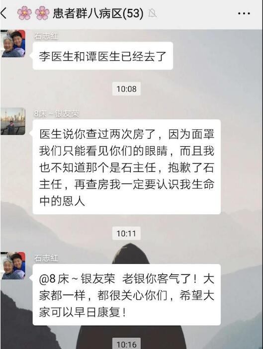 我想了很久,于是把醫(yī)生、護(hù)士、患者都拉在一個(gè)群里。這樣能及時(shí)了解每位患者的病情變化,也能在通知核酸檢測(cè)和CT檢查結(jié)果等信息時(shí)消除患者們的顧慮。果然有了溝通平臺(tái),大家都很高興!