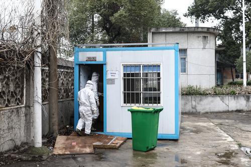 2月26日,湖北省武漢市,幾名醫(yī)療廢物處理員在醫(yī)療垃圾暫存點(diǎn)搬運(yùn)。中青報(bào)·中青網(wǎng)記者 趙迪/攝