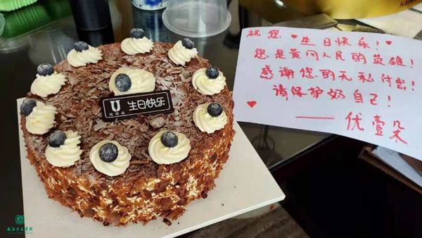 “那天11床大叔過(guò)生日,護(hù)士長(zhǎng)給他準(zhǔn)備了一個(gè)小蛋糕……我盯著蛋糕感動(dòng)之余心中有點(diǎn)小小悵然,以為隊(duì)里不知道我過(guò)生日?!比Z說(shuō),沒(méi)想到晚上他下班回酒店后,丁敏護(hù)士長(zhǎng)和查子惠護(hù)士長(zhǎng)竟然與小組所有成員帶著蛋糕過(guò)來(lái)為他慶祝生日?!笆潞笪也胖溃形绯缘降纳綎|口味長(zhǎng)壽面是護(hù)士長(zhǎng)親手做的;晚上的蛋糕也是護(hù)士長(zhǎng)通過(guò)酒店聯(lián)系志愿者為我做的,讓我很感動(dòng)。”