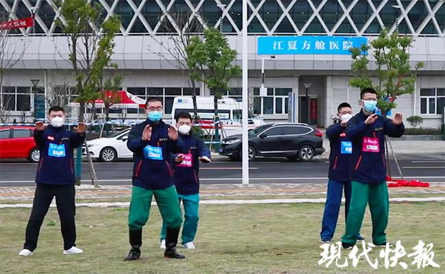 " 野馬分鬃、白鶴亮翅、手揮琵琶 ……"2 月 27 日上午,武漢江夏區(qū)大花山方艙醫(yī)院外的大草坪上,5 名男護士流暢地完成了一套 " 簡化六式太極操 " 演示。這次,他們不僅僅是在給方艙的患者教學(xué),而是要錄制一條視頻,送給奮戰(zhàn)在抗疫一線的工作人員。