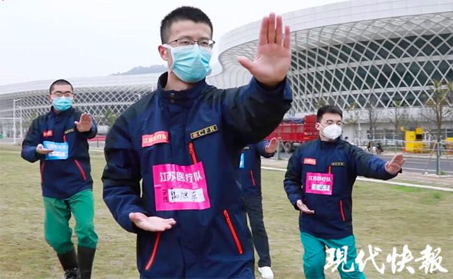 目前,這套 " 簡化六式太極操 " 教學(xué)視頻由國家中醫(yī)醫(yī)療隊江蘇隊和現(xiàn)代快報聯(lián)合制作完成,將向江蘇援湖北醫(yī)療隊 2804 名成員推廣。" 這條視頻,男護太極團是把六式太極操做了兩遍演示,醫(yī)護人員身體健康的情況下,打兩遍并不會感覺吃力。" 陸敏表示,希望這套太極操能廣為傳播,讓更多抗疫工作者、新冠肺炎患者都能學(xué)會,早日在 " 戰(zhàn)役 " 中獲勝。(特派記者 是鐘寅 / 文 張浩然 / 攝)