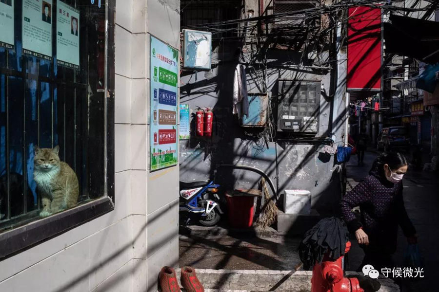 2月16日,湖北省武漢市,民生社區(qū)花樓街,趁著晴天,不少小區(qū)的居民都走出家門,或是采購(gòu)物資,或是曬曬太陽(yáng)。中國(guó)青年報(bào) 李雋輝/攝