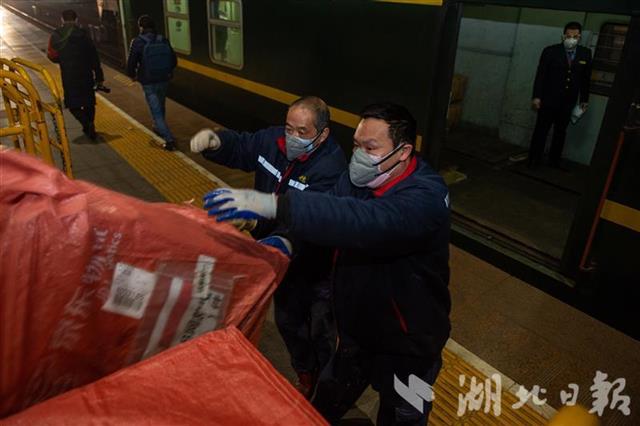 據(jù)武昌火車站值班人員介紹,疫情發(fā)生以來(lái),行包車間每天大約要裝卸轉(zhuǎn)運(yùn)7000余件防疫物資,運(yùn)送物資的“帶貨”列車,大多都是凌晨抵達(dá)。一個(gè)通宵班里,裝卸工人均要搬運(yùn)400件貨物,駕駛員人均往返轉(zhuǎn)運(yùn)50多趟。