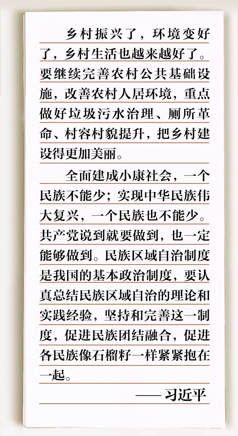 習(xí)近平總書記指出:“各族人民親如一家,是中華民族偉大復(fù)興必定要實現(xiàn)的根本保證?!瘪R鞍山村脫貧攻堅動力不竭,村民生活蒸蒸日上,既源于黨和政府的好政策,更是因為各族群眾同心同德、同心同向。這也啟示我們:56個民族攜手同行,像石榴籽一樣緊緊抱在一起,鑄牢中華民族共同體意識,就能形成勇往直前、無堅不摧的強大力量。