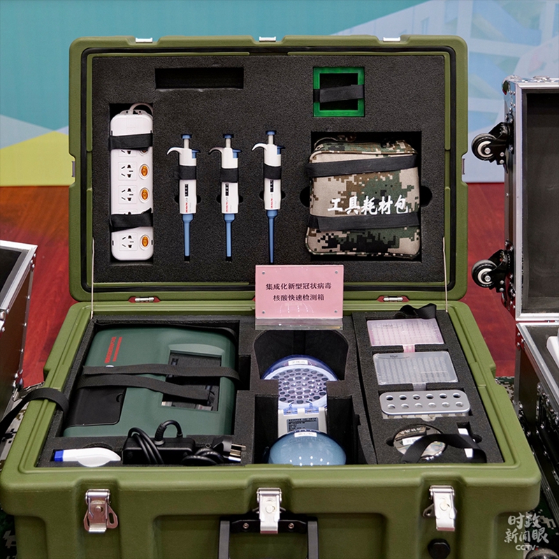 集成化新型冠狀病毒核酸快速檢測(cè)箱,配備了開(kāi)展核酸檢測(cè)所需要的儀器、試劑和耗材,便攜性強(qiáng),靈活機(jī)動(dòng)。(總臺(tái)央視記者李錚拍攝)