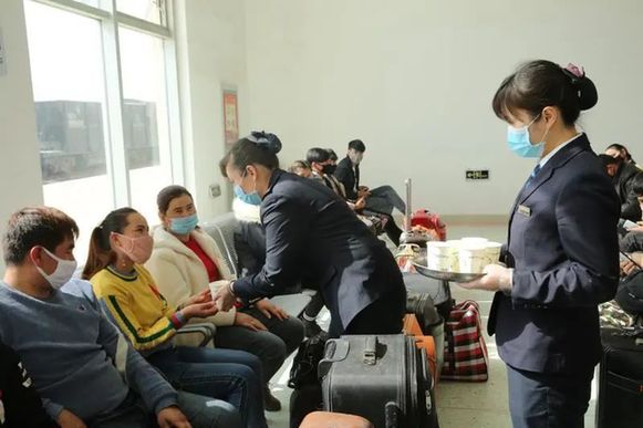 在列車上,庫爾勒客運(yùn)段設(shè)置了隔離室,每2小時對務(wù)工人員測溫,增加對列車內(nèi)部設(shè)施設(shè)備消毒頻次,列車廣播循環(huán)播放新冠肺炎預(yù)防知識宣傳,確保務(wù)工人員順利抵達(dá)目的地。
