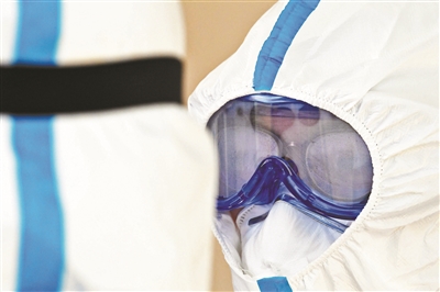 在隔離病房待了一會兒,流調(diào)員的護目鏡就起了霧氣。記者 付丁 攝