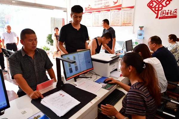 社區(qū)居民在河南省鄧州市花洲街道辦事處中州家園社區(qū)為民服務(wù)大廳辦理業(yè)務(wù) 馮大鵬 攝