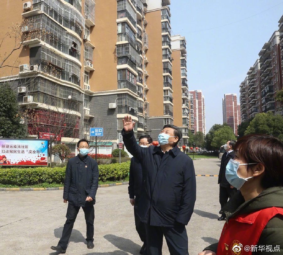 正在武漢考察的習(xí)近平總書(shū)記來(lái)到東湖新城社區(qū),察看社區(qū)衛(wèi)生防疫、社區(qū)服務(wù)、群眾生活保障等情況。樓上居家隔離的居民群眾看到總書(shū)記來(lái)了,紛紛從陽(yáng)臺(tái)和窗戶探出頭來(lái),揮手向總書(shū)記問(wèn)好,有的搖著國(guó)旗高呼:“中國(guó)加油!武漢加油!”習(xí)近平不時(shí)駐足,微笑著向大家揮手致意:“大家一起加油,再堅(jiān)持一下!”(文字:張曉松、朱基釵 攝影:鞠鵬,謝環(huán)馳)