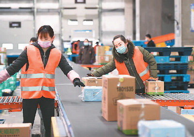 近日,位于北京市順義區(qū)的菜鳥物流倉庫在做好疫情防控的同時(shí),穩(wěn)步有序復(fù)工復(fù)產(chǎn)。該物流倉庫目前每天處理訂單近5萬件,生產(chǎn)運(yùn)營基本恢復(fù)到日常水平。圖為3月12日,在順義區(qū)菜鳥物流倉庫,幾名員工在分揀打包的商品。