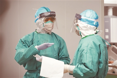有的護(hù)士缺水缺氧暈倒過(guò),可休息一會(huì)兒起來(lái)后繼續(xù)戰(zhàn)斗;有的護(hù)士從不敢坐凳子,因長(zhǎng)時(shí)間穿戴尿不濕,一坐下就會(huì)滲濕防護(hù)服;有的護(hù)士還哭過(guò),不是因?yàn)榭嗪屠?,而是被病人溫暖的話語(yǔ)感動(dòng)得落淚。