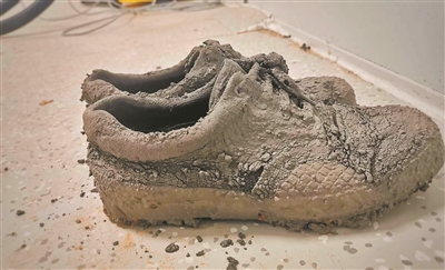 讀完,一連串問(wèn)題從記者腦中冒出來(lái)。這是誰(shuí)的鞋?放在哪里?為什么會(huì)踩進(jìn)水泥里?