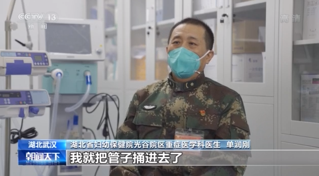湖北省婦幼保健院光谷院區(qū)重癥醫(yī)學(xué)科醫(yī)生、危重癥患者救治突擊隊隊員 單潤剛:我們在吸氣的時候,聲門會變大,變大那一瞬間我就把管子插進去了,也就零點幾秒,不到一秒鐘。