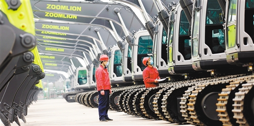 位于陜西省渭南高新區(qū)的中聯(lián)重科渭南工業(yè)園內(nèi),檢驗(yàn)人員對(duì)即將出廠的挖掘機(jī)檢查驗(yàn)收。崔正博攝(中經(jīng)視覺(jué))