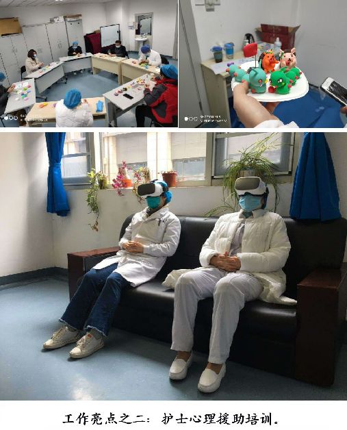 武漢大學(xué)人民醫(yī)院東院根據(jù)專家組提供的方案,制定了本單位具體實(shí)施方案,在醫(yī)院?jiǎn)T工休息區(qū)開(kāi)設(shè)醫(yī)務(wù)人員心靈驛站,營(yíng)造溫馨輕松環(huán)境(房間布置、花、食物等),播放有關(guān)心理健康知識(shí)、放松訓(xùn)練、心理干預(yù)技巧音頻視頻,為來(lái)訪人員提供生物反饋、音樂(lè)治療、放松訓(xùn)練、智能心理減壓放松系統(tǒng)(虛擬現(xiàn)實(shí))、手工制作等心理健康服務(wù)。心靈驛站為醫(yī)護(hù)工作者在繁忙的臨床工作后,提供了一個(gè)休養(yǎng)生息、溝通交流、鼓勁加油的場(chǎng)所,有效緩解了醫(yī)護(hù)人員緊張、焦慮等情緒。
