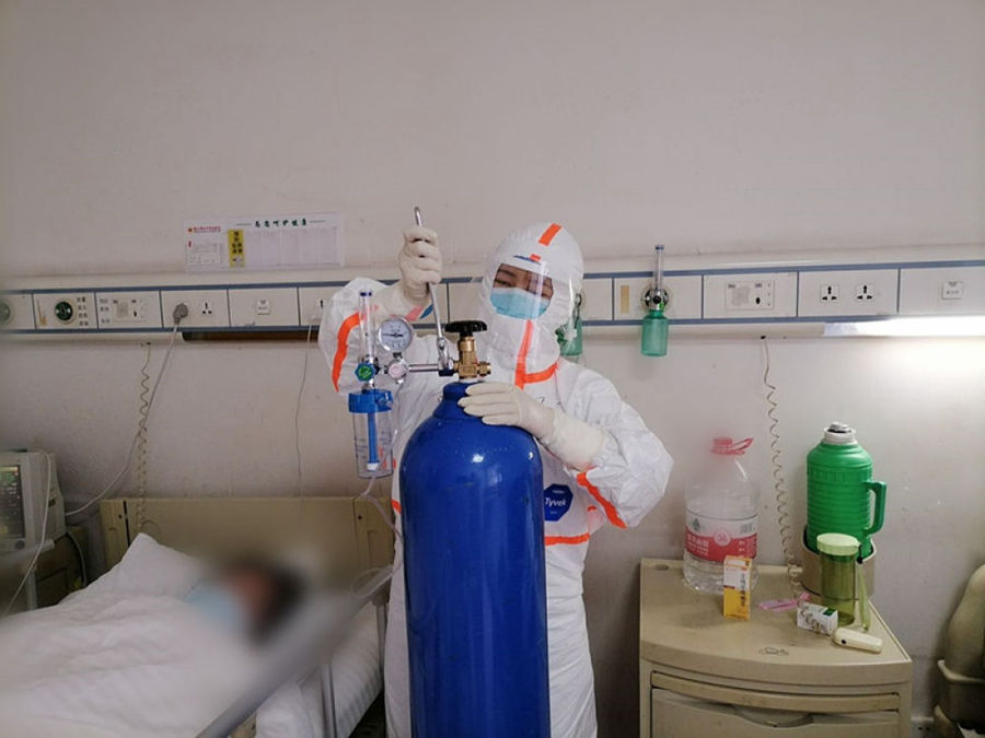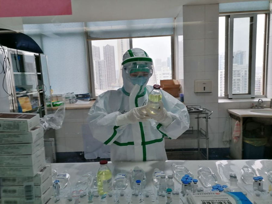 圖為四川大學華西醫(yī)院援湖北醫(yī)療隊醫(yī)務人員銀鈴在工作中。
