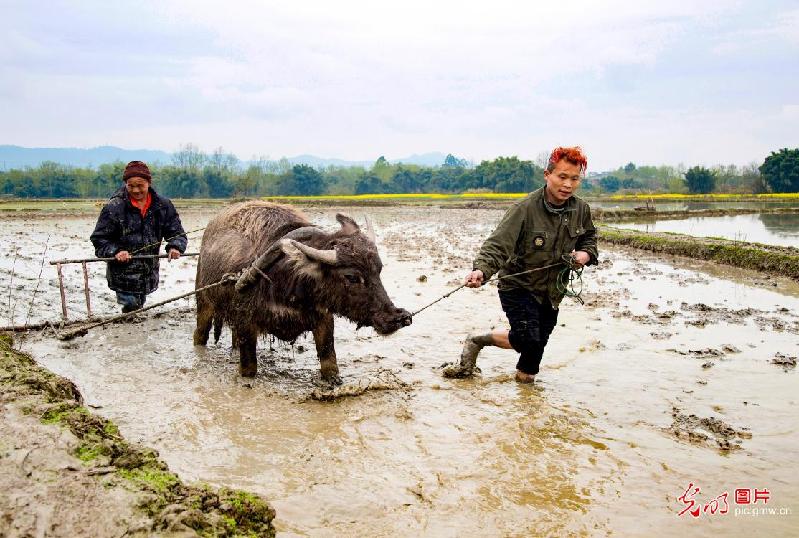 春分時節(jié),人們珍惜當(dāng)下光陰辛勤勞作,許下來年五谷豐登的美好心愿。(張倩)
