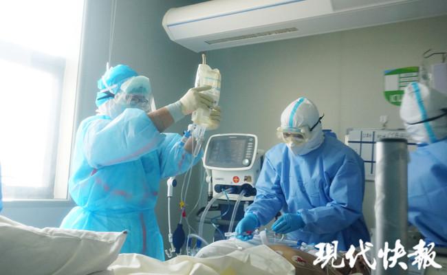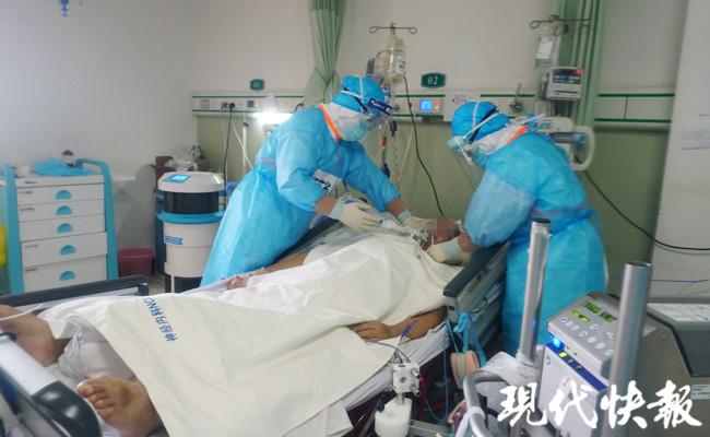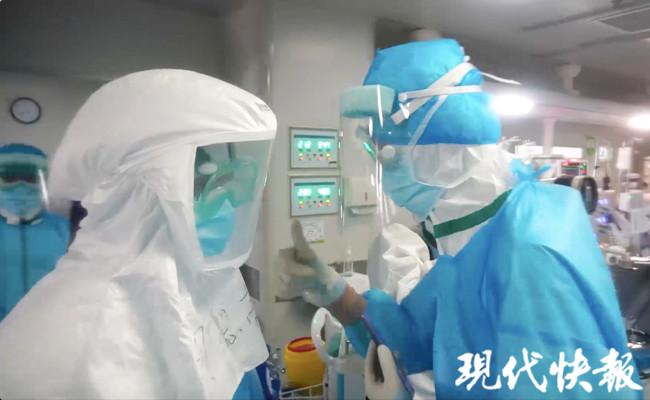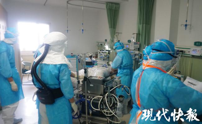 現(xiàn)代快報(bào)記者穿好防護(hù)服,與醫(yī)護(hù)人員一同進(jìn)入重癥病房。