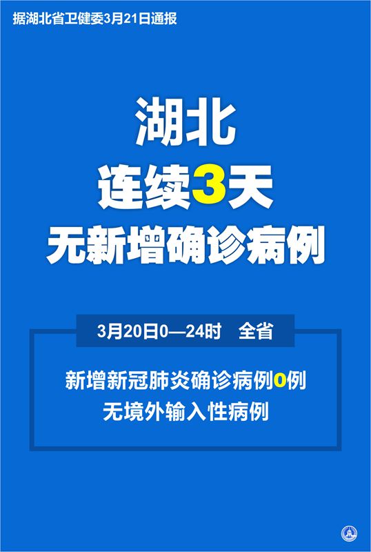 新華社武漢3月21日電(記者侯文坤)據(jù)湖北省衛(wèi)健委21日通報(bào),3月20日0—24時(shí),全省新增新冠肺炎確診病例0例,無(wú)境外輸入性病例。