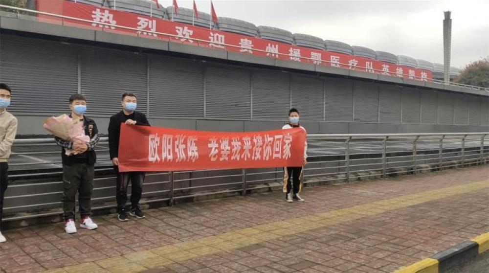 3月18日,武漢至貴陽 今天,我站在了家鄉(xiāng)的土地上,回想起過去一個多月在武漢的日日夜夜,竟然隱隱約約覺得有一種不真實感。 昨晚11點,我們接到第二天撤離武漢的通知,心情太激動了,連忙收拾行李,又打掃了房間,想把房間盡可能地收拾像入住時的干凈樣子。這些日子,武漢人真的太難了,不想再給他們留下任何一點負(fù)擔(dān)。 收拾完畢以后,看著窗外凌晨的武漢,突然有一種不舍,在武漢的一幕幕在腦海中出現(xiàn)。 圖為貴州省援助湖北醫(yī)療隊隊員歐陽張陳在工作中。 凌晨5點,起床整理,吃早餐,然后集合到機場,在走之前,那些曾經(jīng)日日夜夜和我們一起并肩作戰(zhàn)的戰(zhàn)友們來給我們送行。他們的身影隨著告別地?fù)]手越來越遠(yuǎn),越來越遠(yuǎn)…… 踏雪至,暖陽歸。 一路上,很多隊友沉默不語,我相信,他們的心情和我一樣復(fù)雜。車走在空曠的大路上,迎著緩緩升起的太陽,在濕漉漉的地面上留下了細(xì)長的光影。我看著車窗外的黃鶴樓、長江大橋,這是一座和我生死之交的城市。 路上我突然看見一位騎電瓶車的大爺把車停了下來,站到路邊,向我們深深地鞠了一躬,還豎起了大拇指。 那一刻,我流淚了。 武漢人是溫暖的。在武漢的這一個多月里,聽武漢人民說得最多的兩個字就是“謝謝”。其實,我更想感謝他們。為了能讓我們安心工作,他們給予了我們很多幫助和關(guān)心。武漢不止是一座英雄的城市,更是一座溫暖的城市。每一個離別的面孔都在和我說著,一定要?;貋砜纯础?/span> 圖為貴州省援助湖北醫(yī)療隊隊員歐陽張陳在工作中。 11點30分,我們的飛機準(zhǔn)時到達了機場。沒來得及收起離別的思緒,就回到了想念的家鄉(xiāng)。 當(dāng)我們的車隊緩緩駛出機場,我突然聽到車?yán)锏耐麓蠛埃骸巴?、歐陽張陳!其實就是回頭的一瞬間,我看到了車窗外的橫幅:“歐陽張陳,老婆我來接你回家?!?/p>