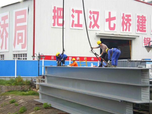 江漢七橋工地工人們戴著口罩緊張作業(yè)