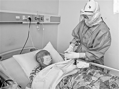 3月30日下午,已經(jīng)沒(méi)有檀學(xué)兵的班次了,但她還是穿上防護(hù)服進(jìn)了病房,敲門(mén)進(jìn)去,老胡轉(zhuǎn)過(guò)來(lái)看見(jiàn)是她,淚花一下出來(lái)了。