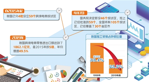 2019年,我國(guó)跨境電商零售進(jìn)出口額達(dá)到了1862.1億元,是2015年的5倍,年均增速49.5%,綜試區(qū)在外貿(mào)發(fā)展中的作用也日益凸顯。