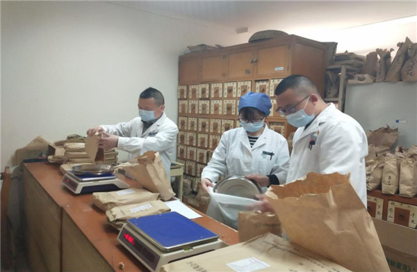 中藥房藥師在調(diào)劑預(yù)防中藥(央廣網(wǎng)發(fā) 北京小湯山定點(diǎn)醫(yī)院供圖)
