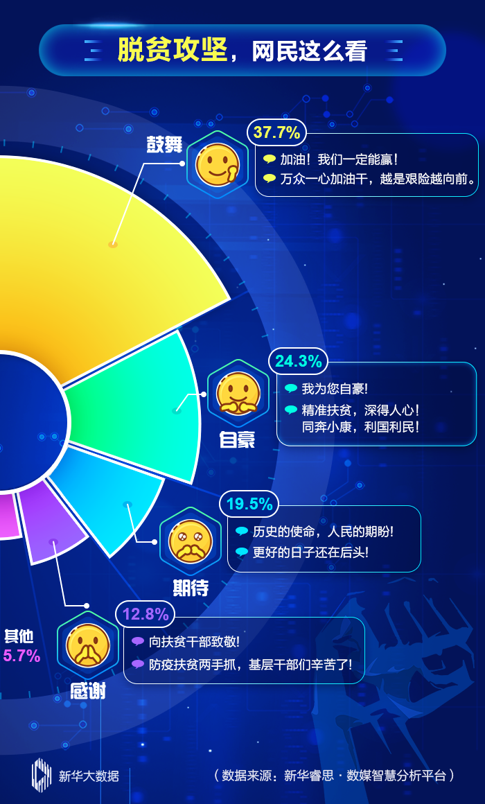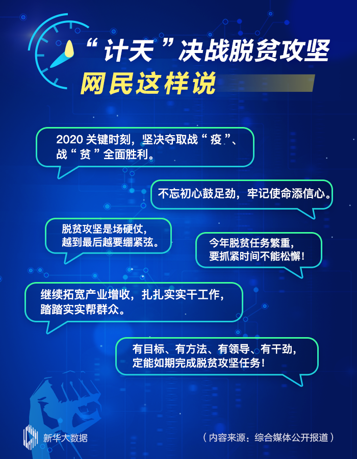 數(shù)據(jù)顯示,倒計時沖鋒之際,網(wǎng)民對脫貧攻堅非常關(guān)注。有網(wǎng)民留言稱:今年脫貧任務(wù)繁重,要抓緊時間不能松懈;也有網(wǎng)民留言表示要扎扎實實干工作;還有網(wǎng)民留言表達對完成目標任務(wù)的信心:2020關(guān)鍵時刻,堅決奪取戰(zhàn)“疫”、戰(zhàn)“貧”全面勝利。