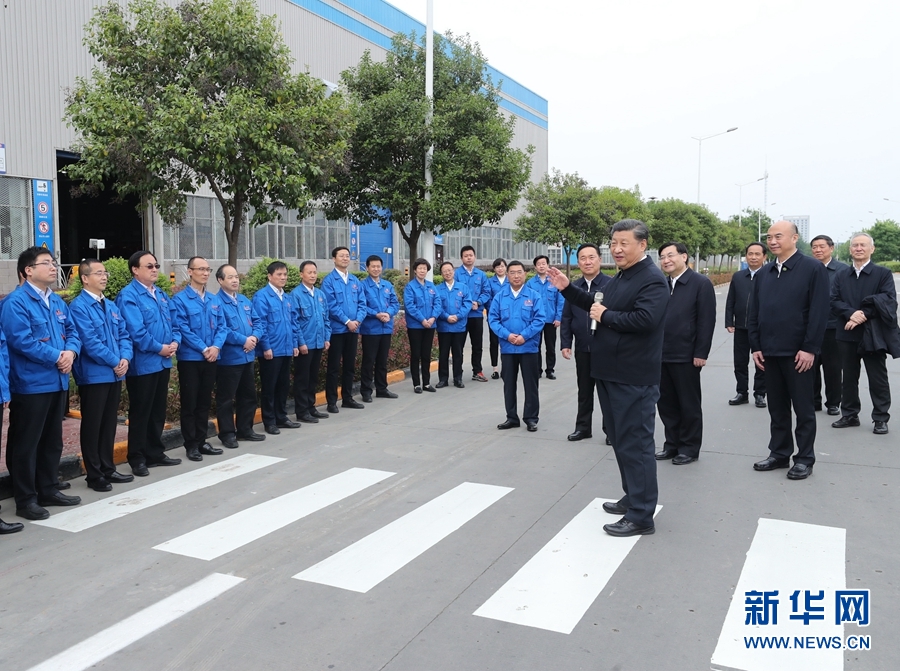 4月20日至23日,中共中央總書記、國家主席、中央軍委主席習(xí)近平在陜西考察。這是4月22日,習(xí)近平在陜西汽車控股集團有限公司考察時,同企業(yè)職工親切交流。 新華社記者 鞠鵬 攝