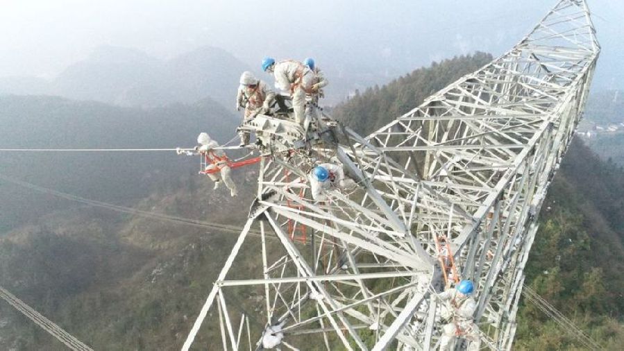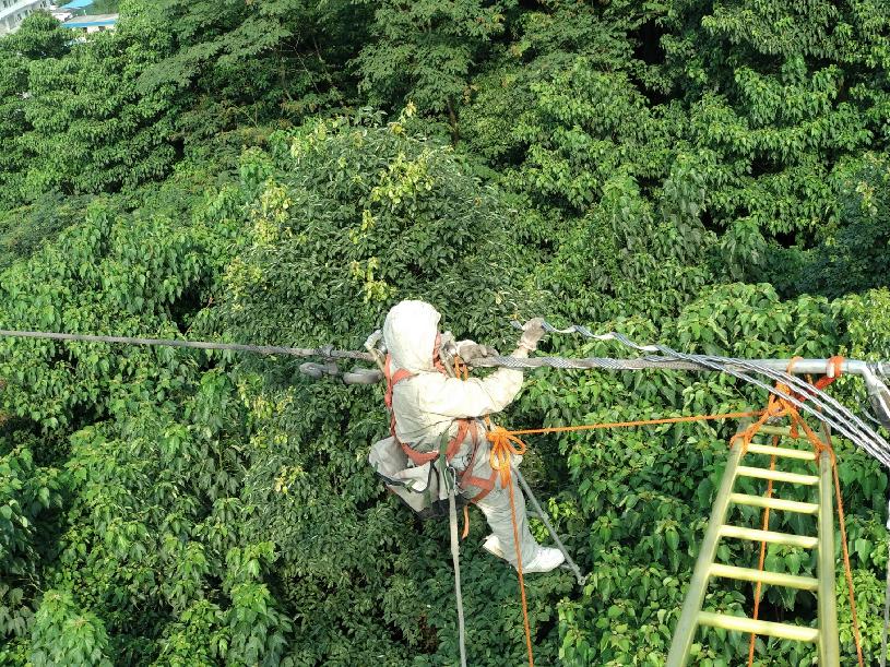 第一次爬塔時(shí),田貴陽(yáng)心里直打怵?!坝?xùn)練的時(shí)候,師傅教我們不要往下看,往上看,看著腳釘往上爬。”現(xiàn)在,工作12年的他早已輕車熟路,120米高的過(guò)江塔,蹭蹭蹭六七分鐘就爬了上去。而上了塔工作才剛開(kāi)始,要是碰上任務(wù)多,在半空一待就得五六個(gè)小時(shí)。