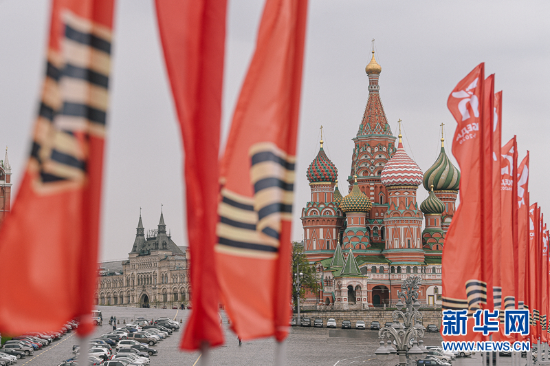 5月4日,在俄羅斯首都莫斯科,紅場(chǎng)附近道路裝飾著慶祝勝利日的旗幟。俄羅斯總統(tǒng)普京4月16日宣布,因新冠疫情俄將推遲原定于5月9日舉辦的俄紀(jì)念衛(wèi)國(guó)戰(zhàn)爭(zhēng)勝利75周年閱兵式。 為遏制新冠疫情蔓延,3月30日起莫斯科和俄多城實(shí)施居家隔離制度。 新華社發(fā)(葉甫蓋尼·西尼岑攝)