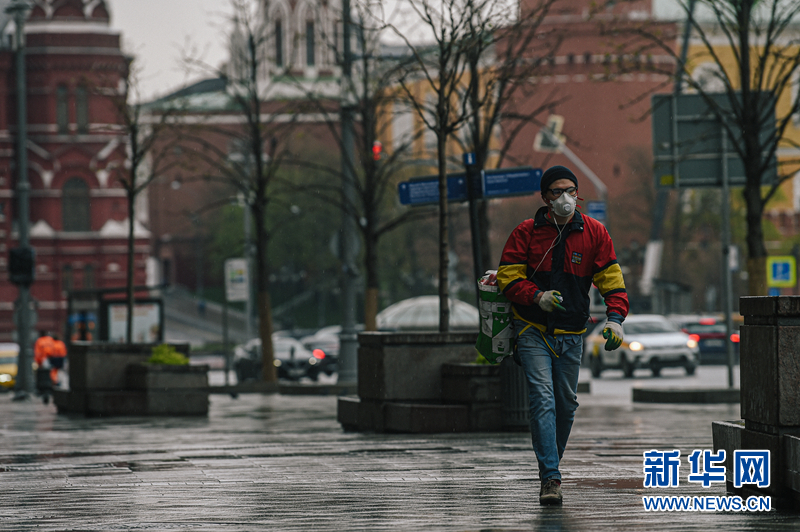 5月4日,在俄羅斯首都莫斯科,一名男子佩戴口罩出行。 為遏制新冠疫情蔓延,俄羅斯各地大都采取隔離措施,要求民眾避免非必要外出。 新華社發(fā)(葉甫蓋尼·西尼岑攝)