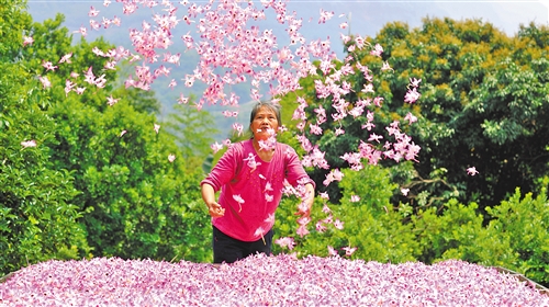 5月5日,在貴州省赤水市長(zhǎng)沙鎮(zhèn)長(zhǎng)興村,農(nóng)戶在晾曬剛采摘的金釵石斛鮮花。近年來(lái),赤水市積極推進(jìn)生態(tài)農(nóng)業(yè)與鄉(xiāng)村旅游產(chǎn)業(yè)融合發(fā)展,引導(dǎo)農(nóng)民在丹霞石上種植金釵石斛9萬(wàn)余畝,助力脫貧攻堅(jiān)和鄉(xiāng)村振興。王長(zhǎng)育攝(中經(jīng)視覺(jué))