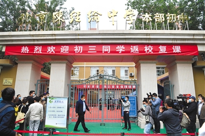 明日,北京8萬多名初三學(xué)生將正式復(fù)課。如何開展體育活動(dòng)?出現(xiàn)突發(fā)事件如何進(jìn)行處理?5月8日,記者對北京市朝陽區(qū)陳經(jīng)綸中學(xué)本部初中進(jìn)行探訪。